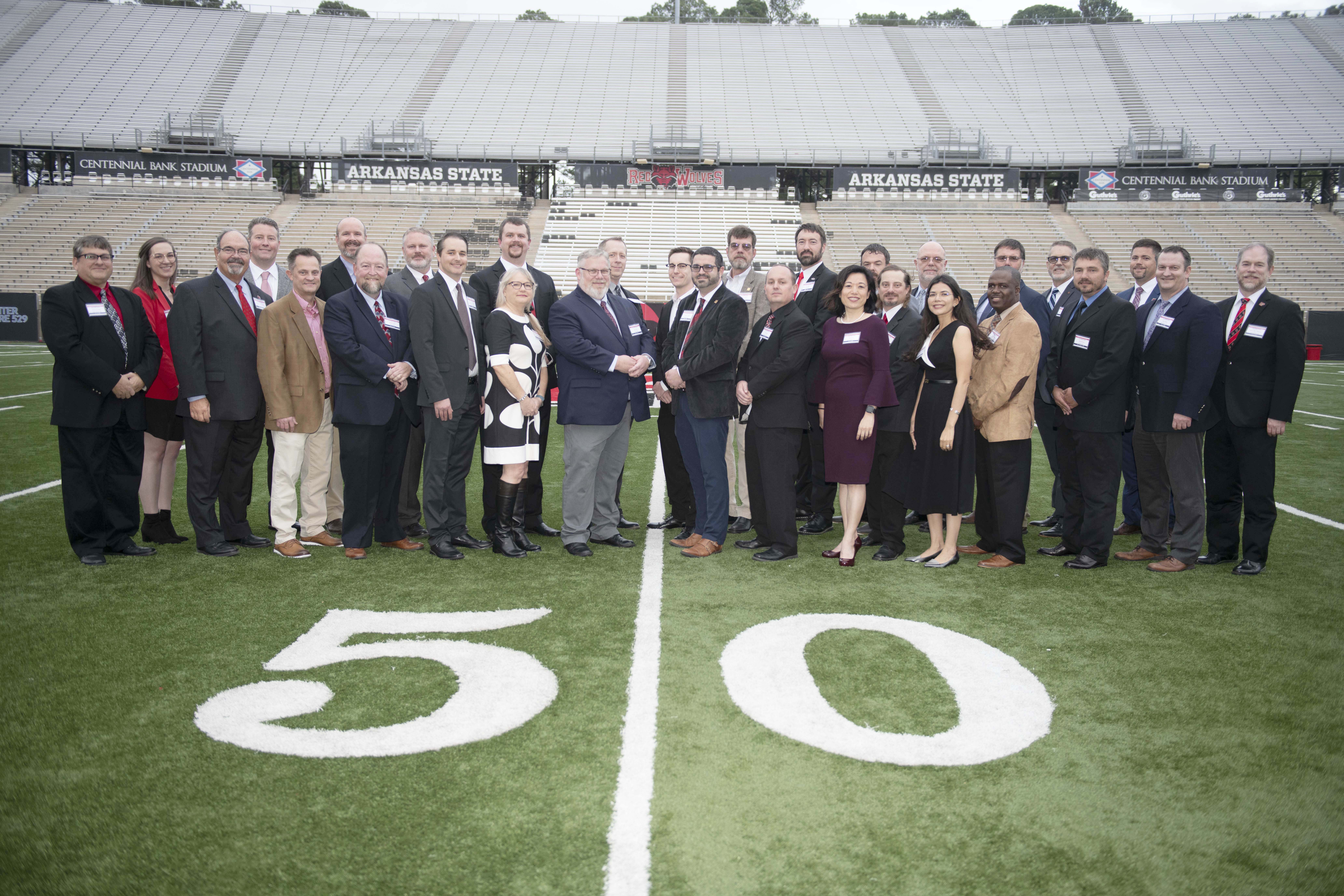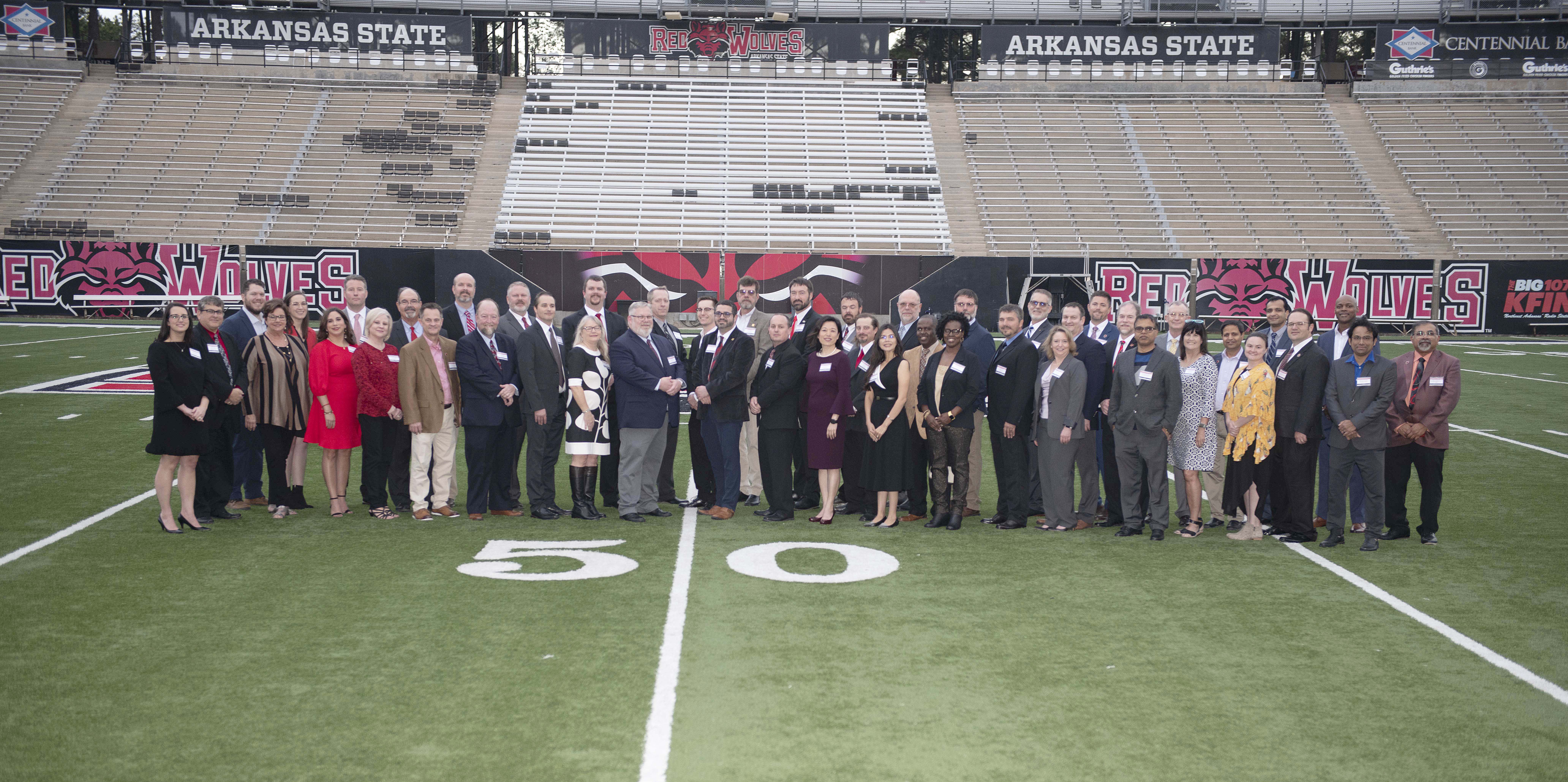The 2022 Annual Meeting was held on November 4th, at the Woodward McAllister Family Club Located in the Centennial Bank Stadium. The business meeting was held on November 5th at the Lab Sciences Building and was followed by a tour of Athletics in the afternoon. Below are pictures from the event.